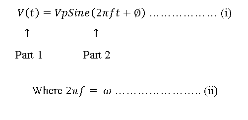 V(t) = VpSine(2πft) …………………………… (iii)
