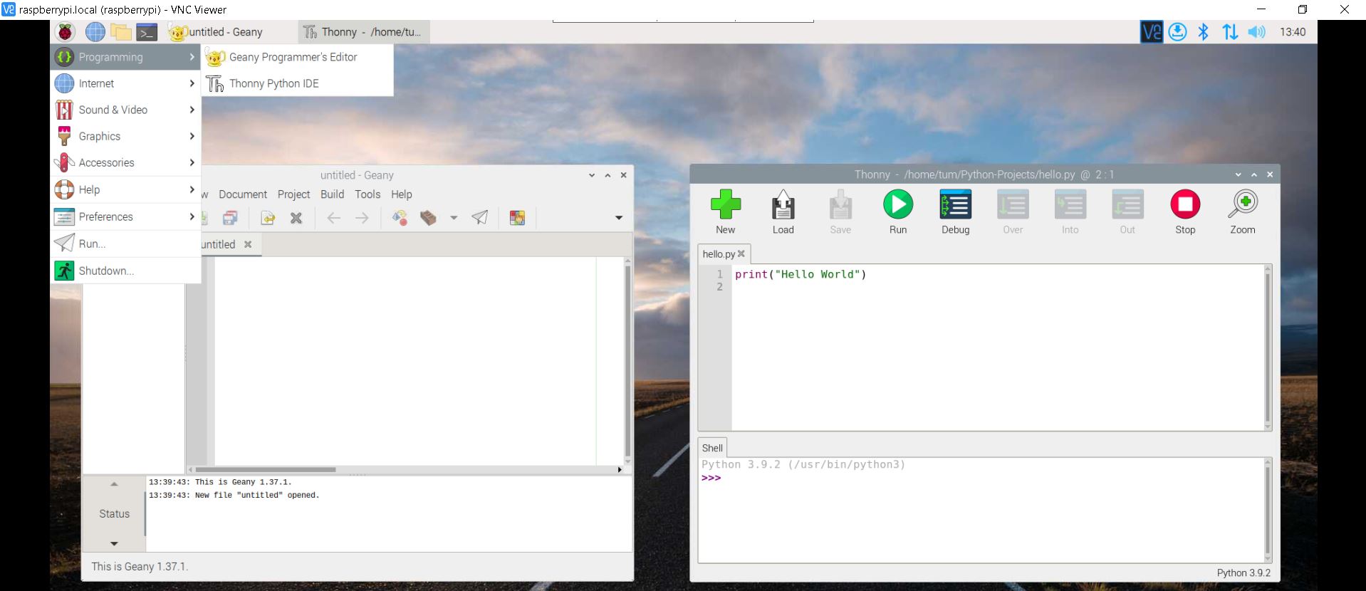 To start programming with the Raspberry Pi, select Menu – Programming and then choose the IDE of your choice. Other IDEs such as Microsoft Visual Studio Code will appear under this menu after you’ve installed them.