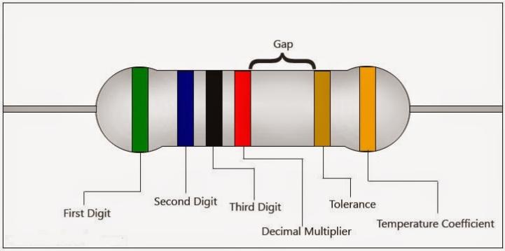Through-hole axial resistors will either have four, five or six bands of color circling the resistor. For us to find out the resistance of a given resistor, we need to decode the colors printed on the resistors body and this varies for based upon the number of color bands on the resistor.