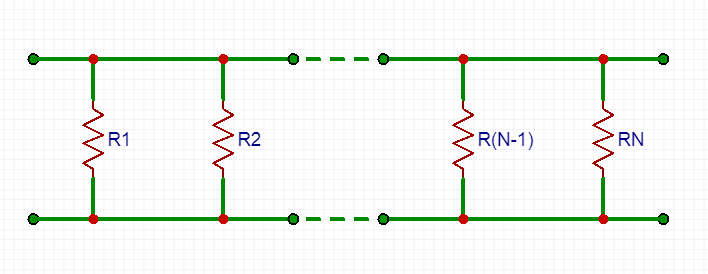 1/R(total) = 1/R1 + 1/R2 + ….. + 1/R(N-1) + 1/RN ………………. (ii)
