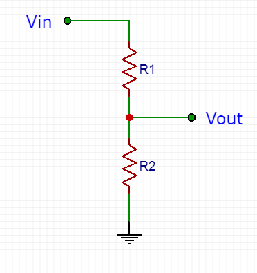 The figure above shows a simple resistive voltage divider, the voltage from Vout to ground can be calculated as: