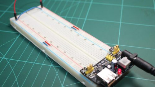 The other simple method of providing power to your breadboard is to use one of the many breadboard power supplies available. Some of these power supplies pull power from your computer’s USB ports and they also have the option to choose between 3.3V and 5V