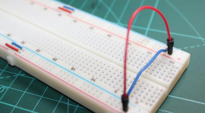 While working with larger breadboards, you should be aware that some large breadboards will often isolate one half of the breadboard’s power rails from the other half. This comes in handy if you have two different voltages powering your circuit such as 3.3V at one end and 5V at the other end.