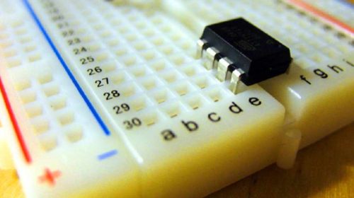 The ravine/valley that separates the two sides of the breadboard was specifically incorporated into breadboards to serve a very important purpose of connecting large components such as Integrated Circuits (ICs). These usually come in what is known as a Dual in-line Package (DIP) design – (a design where the legs come out of both sides of the component to fit perfectly over the valley) in order to minimize the amount of space they take up on the breadboard as shown below.